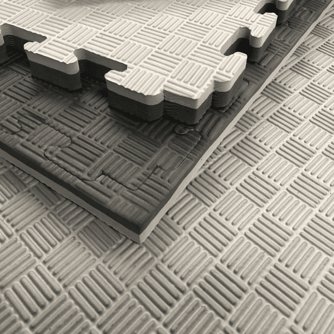 These 20mm Jigsaw Black/Red dimple grip high impact foam mats are made from EVA memory foam. The mats are waterproof and easily wipeable. These black/red reversable mats are 1m x 1m x 20mm. They come with edges, therefore they tesselate together just like a jigsaw puzzle. You have the option to flip the mat sections to create colour zones and they are easily swapped out or flipped if they become damaged. These hard wearing mats if cared for correctly will last a lifetime.