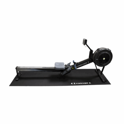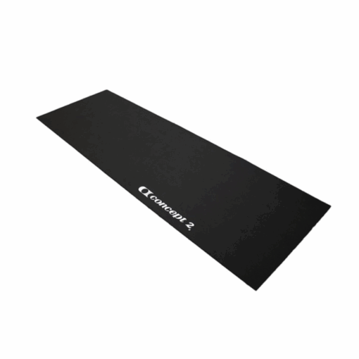 The Indoor Rower Floor Mat is made out of 3/16 inch (4.5 mm) thick black synthetic rubber (PVC) and measures 8.2 feet by 2.6 feet (250 cm by 80 cm). The mat can be used on any surface and helps protect the floor as well as eliminate slippage.