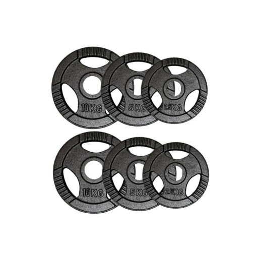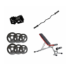 This complete EZ curl bar home gym set includes everything needed for effective upper-body strength training. The bundle features a black oxide EZ curl bar with lock-jaw collars, a full set of tri-grip cast iron weight plates, and a sturdy adjustable bench designed for home use. Ideal for curls, presses, rows, and general strength workouts.