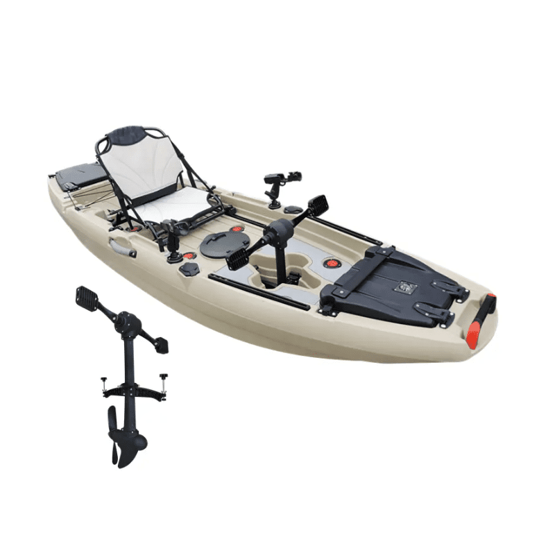 The Fishing Kayak 2.0 is built for anglers who prioritize speed, range, and control. Equipped with a propeller-style pedal drive system, this kayak delivers smooth, efficient forward and reverse motion—ideal for covering longer distances and navigating open waters. Its bicycle-like pedal operation is intuitive and familiar, making it perfect for both beginners and experienced users. A wide 31.5” hull ensures excellent stability without compromising agility, while an adjustable aluminum seat keeps you comfortable for extended fishing trips. With ample gear storage, multiple rod holders, and a foot-controlled rudder system, the Fishing Kayak 2.0 combines power, practicality, and performance in one sleek package.