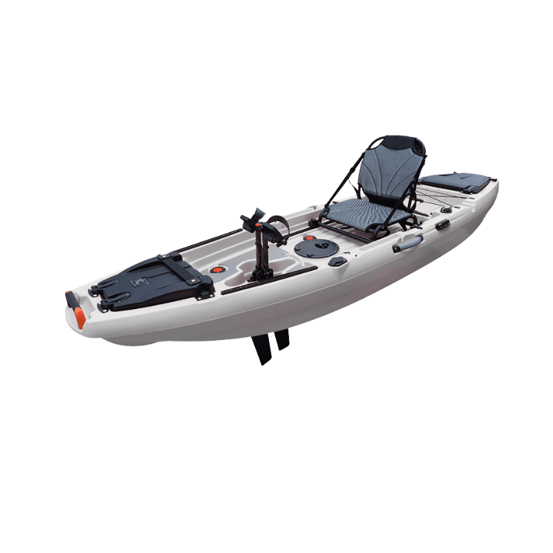 The Fin Pedal Fishing Kayak is expertly crafted for anglers seeking a blend of stability, stealth, and all-day comfort on the water. With its Mirage-style fin pedal drive system, this kayak allows for smooth, quiet propulsion—ideal for fishing in shallow waters, lakes, rivers, and coastal environments. Its wide 31.5” hull ensures exceptional balance and minimizes the risk of tipping, even when standing or reeling in larger catches. A breathable, adjustable aluminum seat keeps you comfortable throughout long fishing sessions, while built-in rod holders and ample storage compartments keep your gear organized and within reach. Whether you’re casting lines in the backcountry or exploring local waters, this kayak delivers performance, reliability, and convenience.