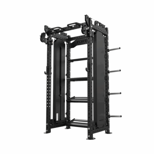 The Forteza Cronus Rack is a compact yet fully equipped strength system that blends cable resistance, free weight training, and integrated storage—perfect for commercial gyms, personal training studios, and high-performance home gyms.