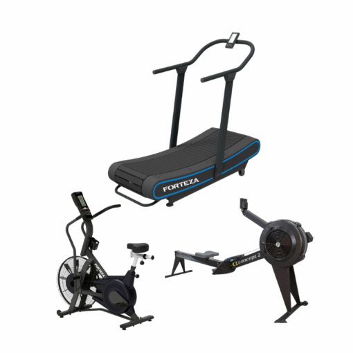 The Forteza HIIT Cardio Package delivers a complete high-intensity training solution, combining three premium machines — the Forteza Prima Curved Treadmill, Forteza Prima Air Bike, and Concept 2 Model D Built for performance and durability, this package is ideal for commercial gyms, performance studios, and home training setups.