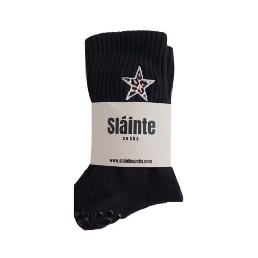Meet Nova Noir, the standout star of the Celtique Noir collection. Designed to command attention, this bold, fashion-forward Pilates sock features striking leopard print embroidery—bringing attitude, strength, and effortless style to your every move.