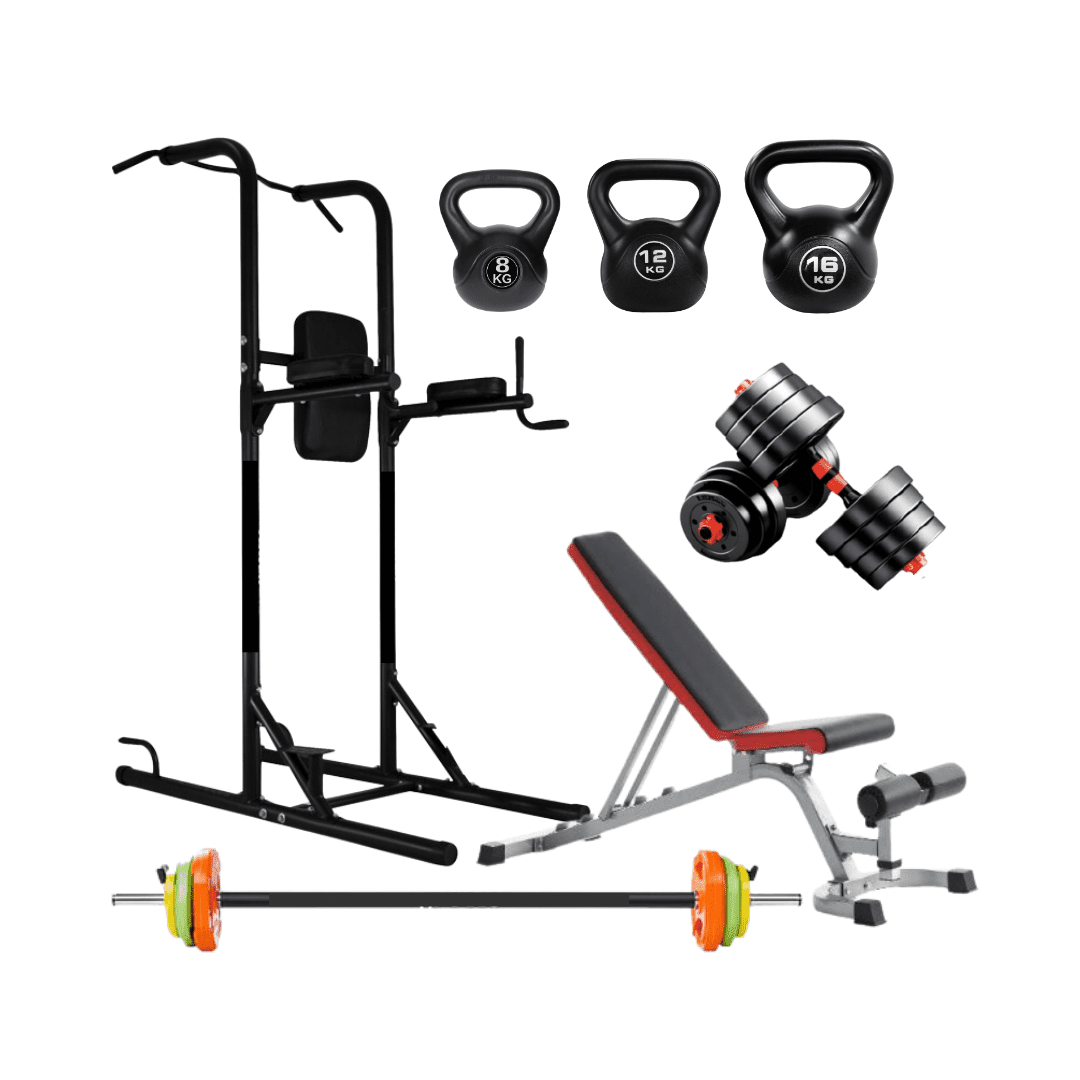 This package is a great solution for anyone starting or looking to progress in their fitness journey. The bundle is designed for home use as each individual product is ideal for home workouts and space-saving. This package allows users to perform both bodyweight and weighted exercises. This makes it a great option for anyone who is just getting started with weight training but also allows for the progression of up to 25kg in weight. Our power tower is an incredibly versatile product allowing users to perform pull ups, dips, knee raises and many more exercises. These are all bodyweight exercises but can be progressively made harder by adding weight. The pump barbell set includes rubber coated plates and can go up to 20kg in weight. For single arm exercises, the adjustable dumbbells are great as you can choose between 1kg and 12.5kg on either arm, making a total of 25kg. Our puls8 kettlebells include 8, 12, and 16kg in weight giving a great range for a variety of exercises and allowing for progression. Our Home-Use Bench allows users to go from a decline position (great for ab workouts) all the way to a 90 degree seated position permitting several training exercises.